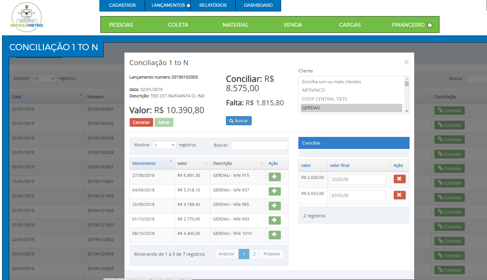 Permite conciliar várias contas em um item do extrato - Eventos com pessoas