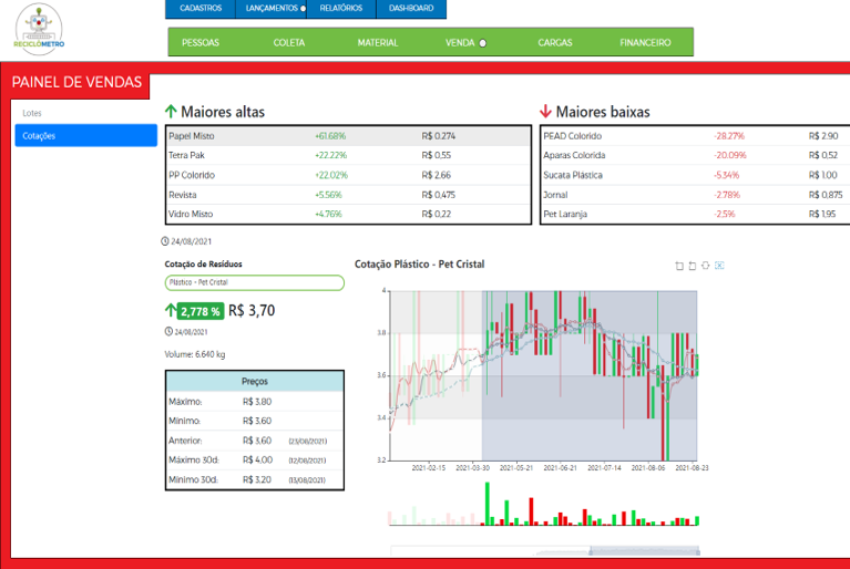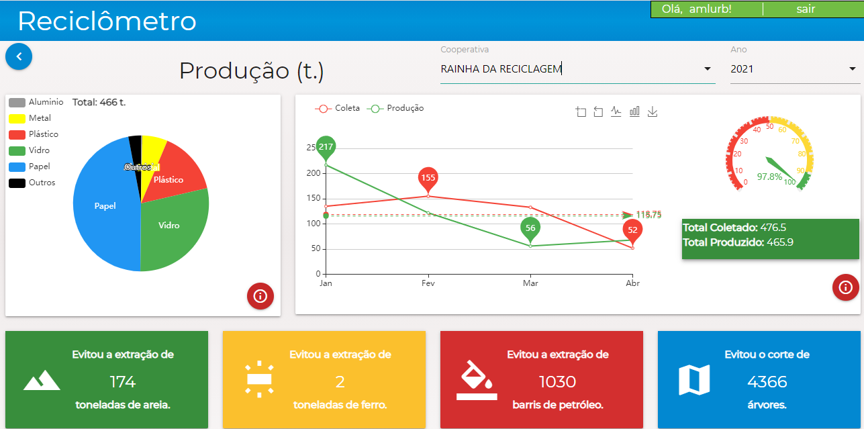 - Balanço comparativo de Entradas (coletas), Vendas e Rejeitos